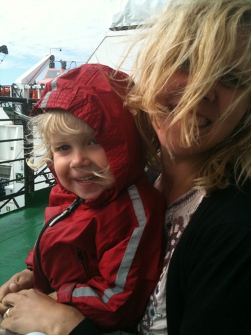 Tji fick jag när det gällde morgonens RG-resa. På grund av kraftig vind måste båten bogseras i land och vi kom till Umeå drygt två och en halv timme senare än vi borde. Vi kommer alltså att komma ihåg också den här resan. Hur folk vinglade omkring som berusade. Hur någon spydde i korridoren. Hur småbarnsfamiljer satt uppradade på däck för att underlätta läget för illamående barn. Hur vi förevigade den knappt uthärdliga blåsten och insåg att ingen bild ändå gjorde rättvisa men att försöka duger.