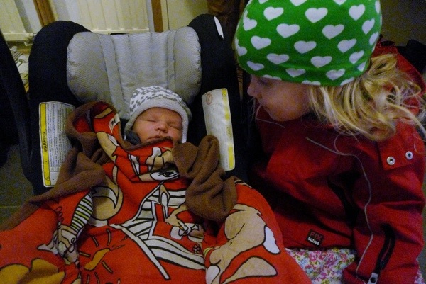 Vi kom hem från bb den torsdag då Arvid fyllde två dagar. Dagen därpå kom min syster i fjärran land på besök. Hon och jag har tillsammans fem barn. Samtliga barn har fötts när vi bott i olika länder men vi har ändå alltid sett till att träffas väldigt kort därpå. Färska syskonbarn är ju så underbara. Systern tog fina bilder de där första dagarna hemma.