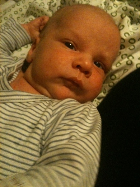 Och för er som är mest intresserade av Arvid kan jag berätta att han igår blev fyra veckor och att hans hälsa samma dag fick sin första törn; en förkylning med stockad näsa som symtom. Den besvärligaste konsekvensen hittills är att han åt hela tre gånger i natt (varannan timme) och att hans ömma mor inte fick sova två hela timmar i sträck. Så hon tänkte börja söka sig till sängen nu. Ibland måste ju förnuftet få regera. Det gjorde det ju inte precis ikväll när jag la det varma strykjärnet direkt på plast och såg plasten smälta fast i järnet.