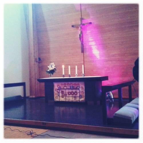 Vi var på gudstjänst. Men den uppmärksamma läsaren noterar naturligtvis att bilden omöjligtvis kan vara tagen på dagens gudstjänst, vilket den inte heller är.