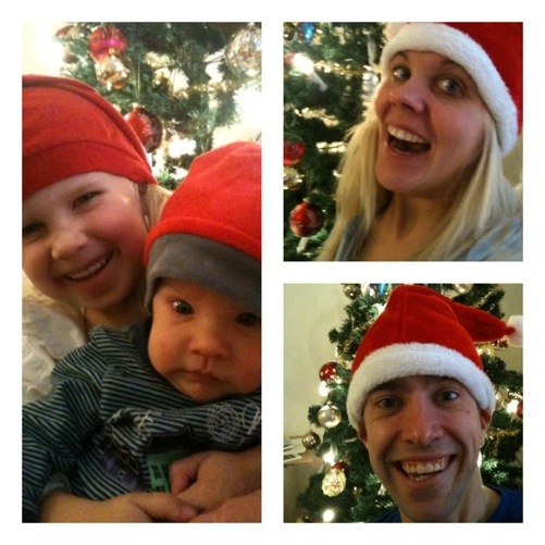 Vi iklädde oss tomteluvor och tog julbilder framför granen. Inte precis bilder som vinner placeringar i fototävlingar, men jag blir väldigt glad när jag ser dem och det räcker så väl. Jag tycker så vansinnigt mycket om min familj.