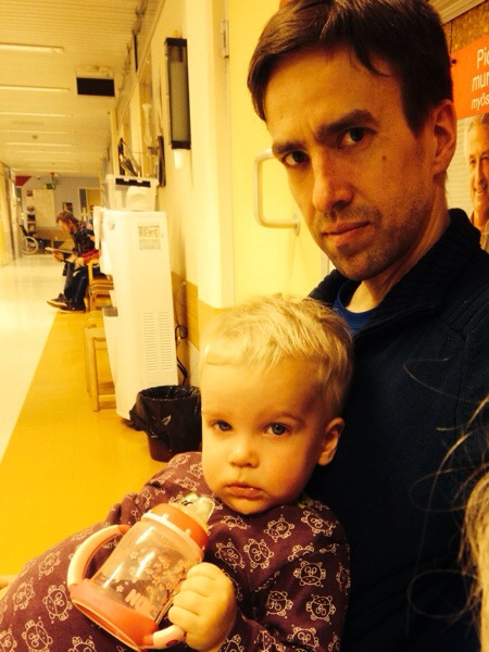 Vi åkte hemifrån halv sex. Och kom hem igen halv nio. Då hade vi hunnit göra väntrummet, läkaren, skötaren, väntrummet, läkaren, väntrummet, skötaren och apoteket. Arvid ska få äta kortison mot en suspekt hosta. Och febrrnedsättande.