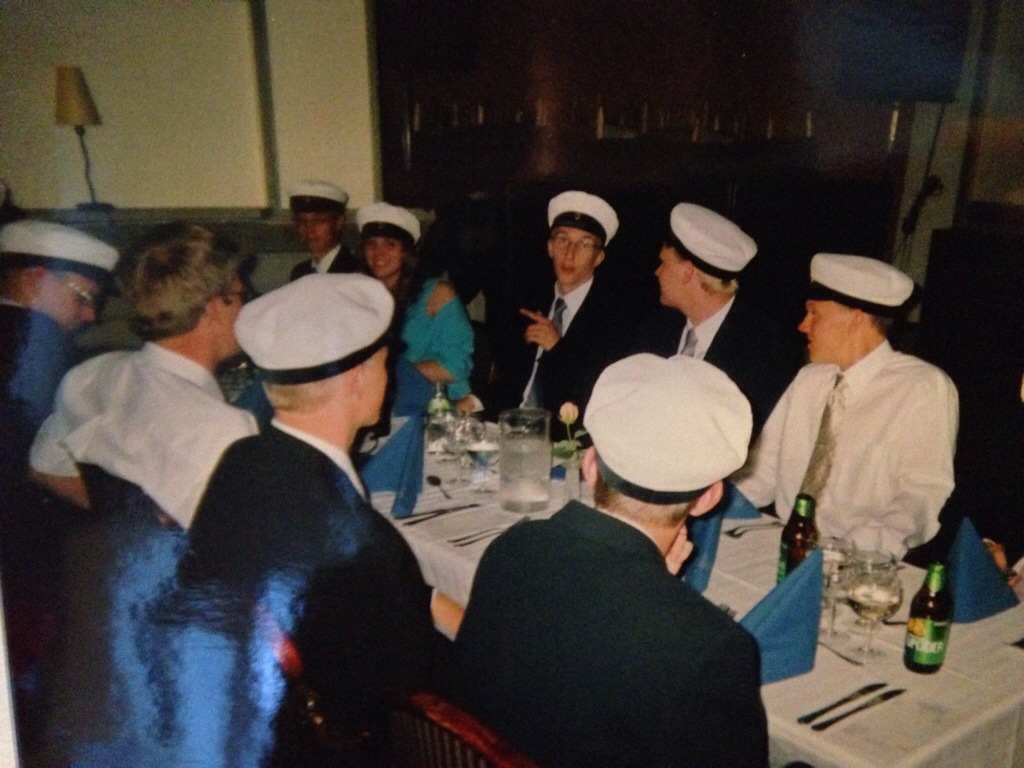 På studentmiddag på kvällen.