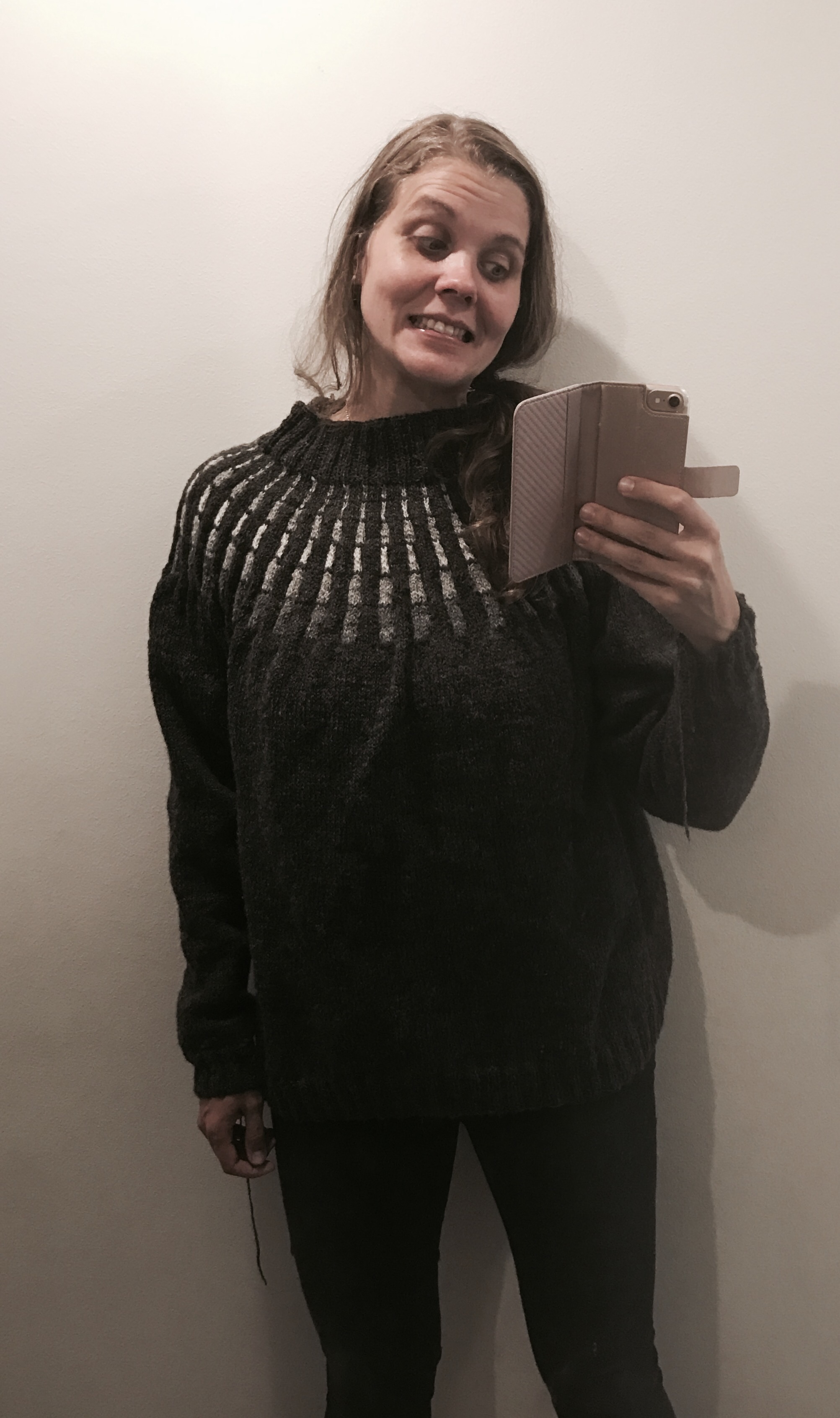 Din fråga är berättigad. Jag stickade en tröja för en sexåring, gick ner i stickstorlek eftersom jag stickar löst men resultatet är ändå en tröja som passar vår nioåring betydligt bättre.