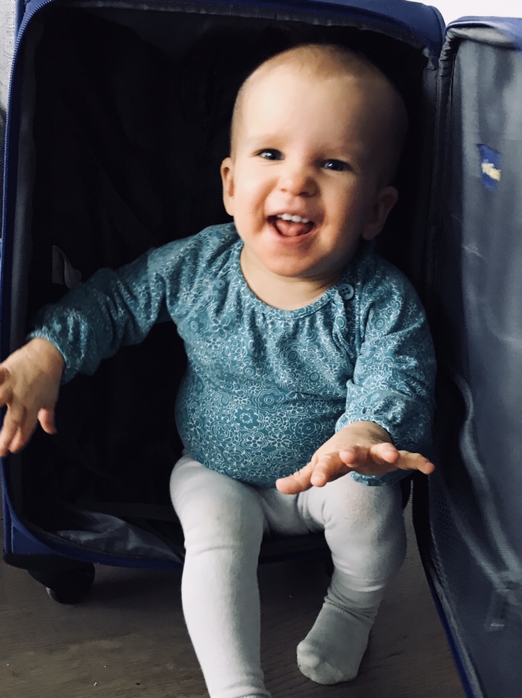 Hilde i kappsäck. För där trivs hon.