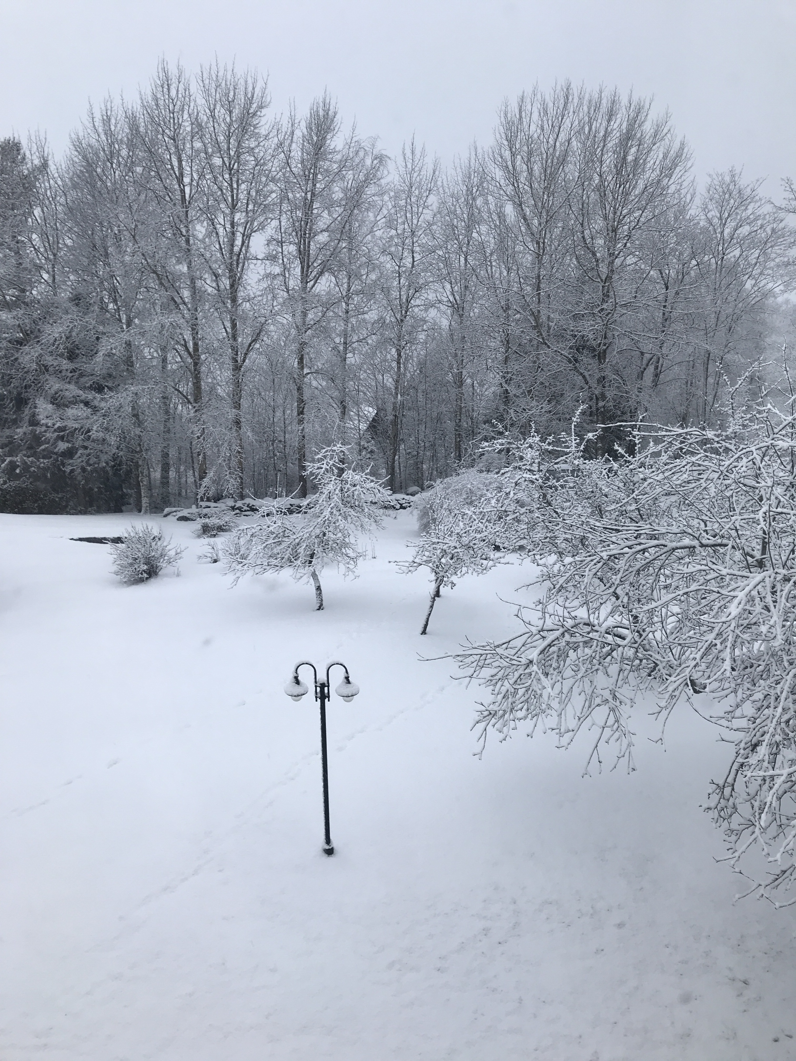 Vi skriver 15 april i coronans år 2020 och så här såg det ut när jag tittade ut genom köksfönstret på morgonen.